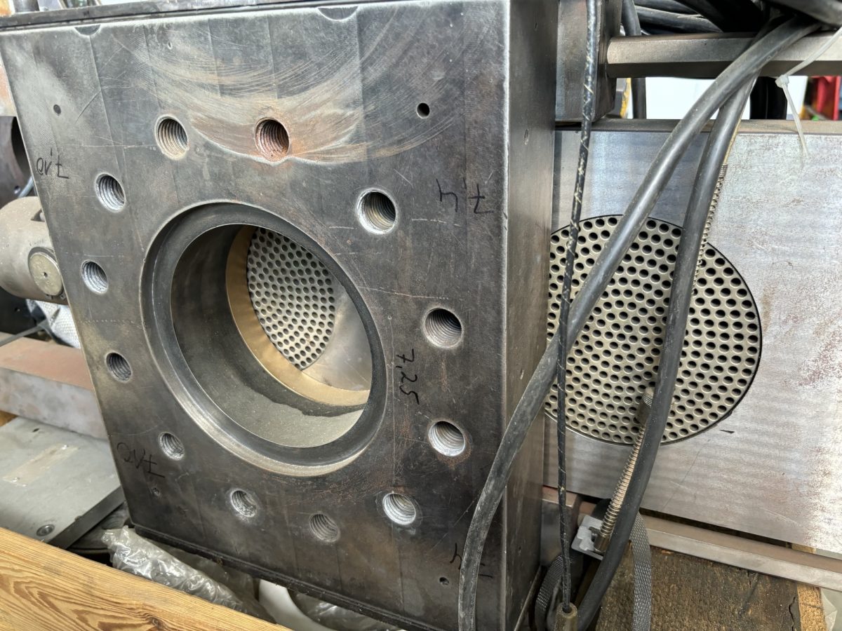 Sieb: 160 mm Ø / Länge: 1700 mm / Breite: 220 mm / Höhe: 400 mm / Überholter Kassettensiebwechsler mit Hydraulikaggregat, Blase muss erneuert werden.