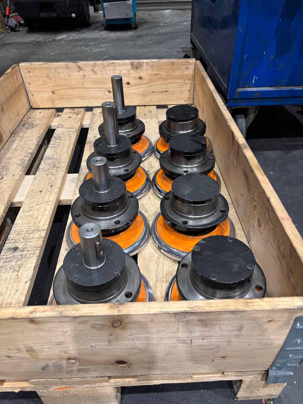 Boschert Klapplager gebraucht guter Zustand. Vierkantaufnahme 40x40mm. Flanschbefestigung Loch D 110mm Teilkreis D135mm 4x D13m. Antriebszapfen 2x D35mm L110mm und 2x D35mm L75mm je mit Passfeder 10mm