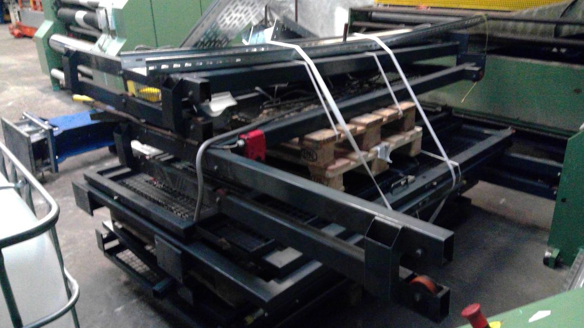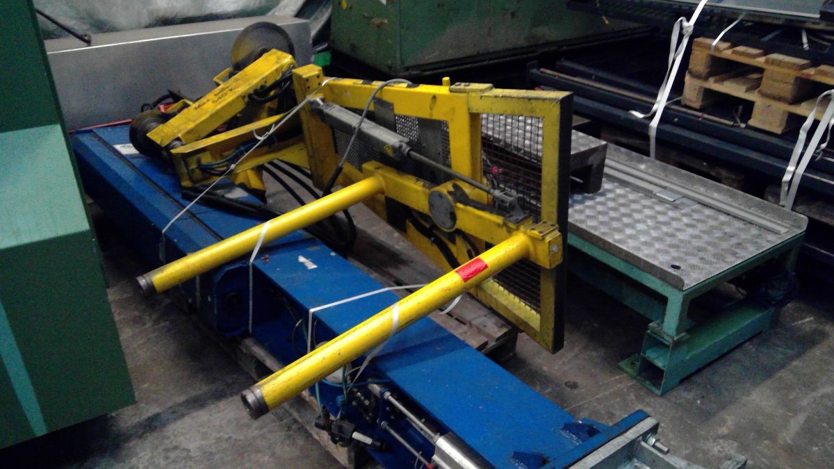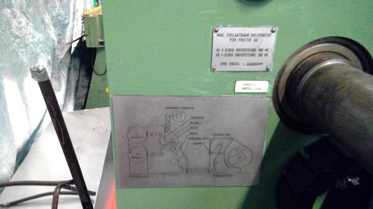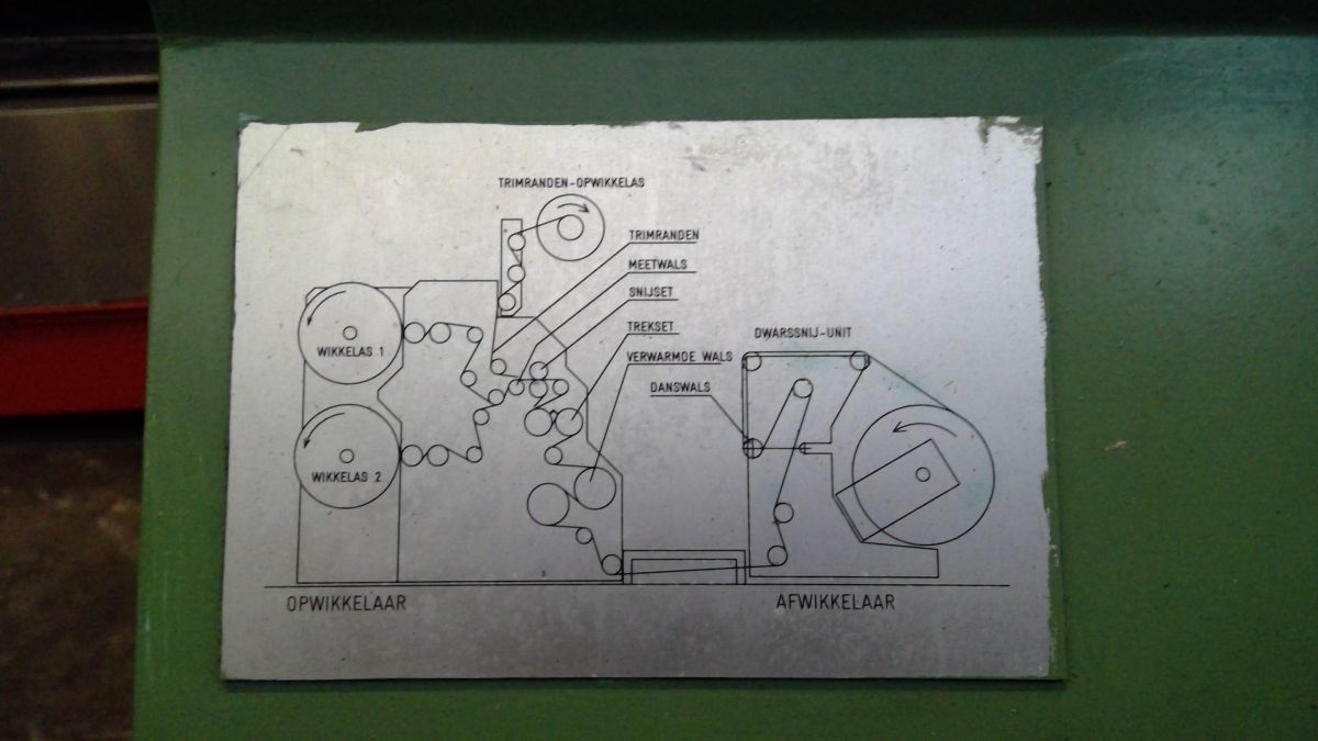 Gute, gebrauchte Anlage zum Umwickeln und Schneiden von Folie, Vlies usw. Rollendurchmesser max. 600mm. Schutzzaun und Rollenhandling vorhanden. Anlage lief bis zuletzt.