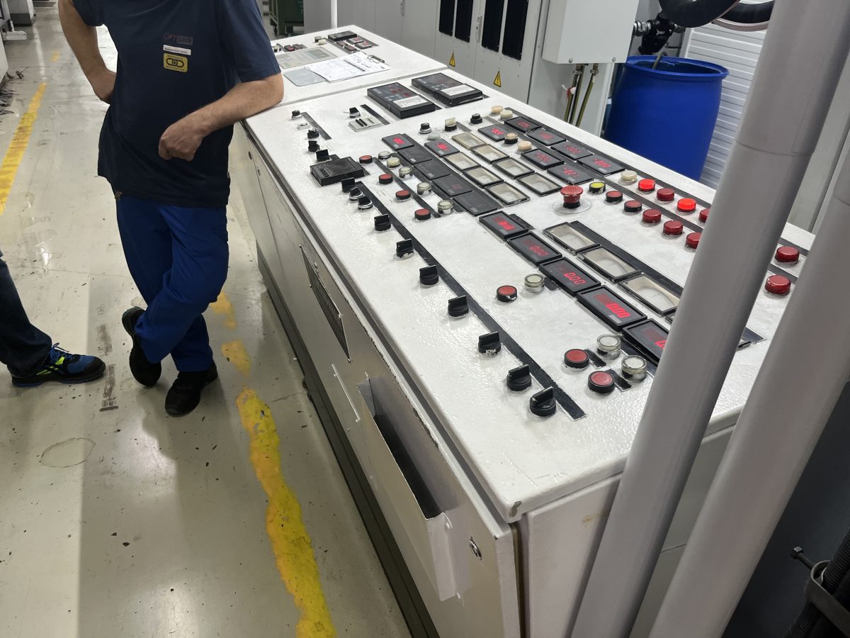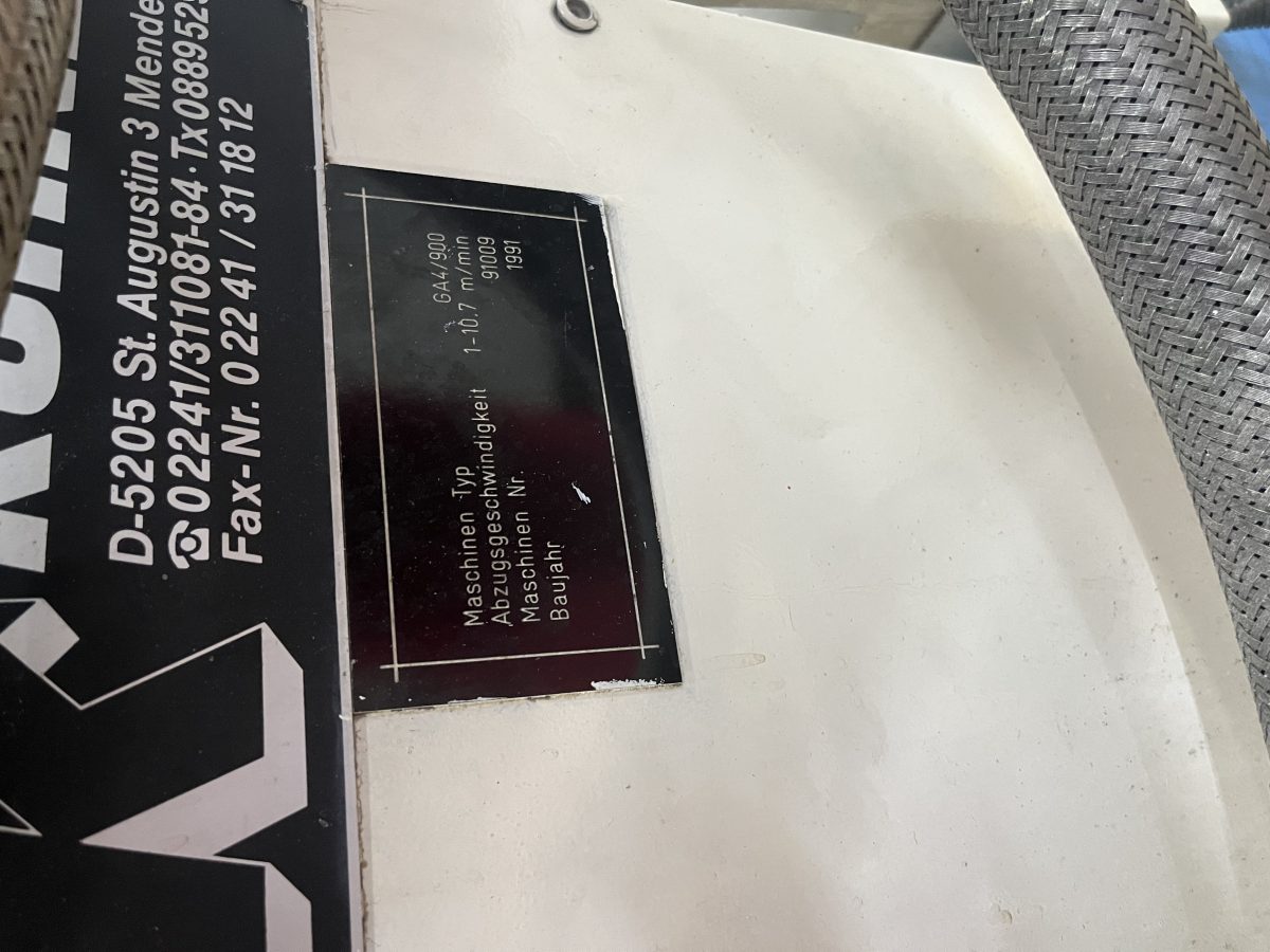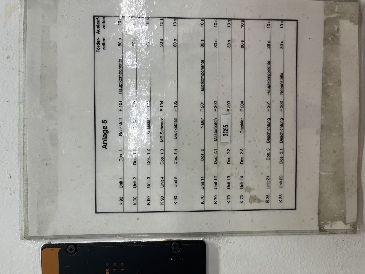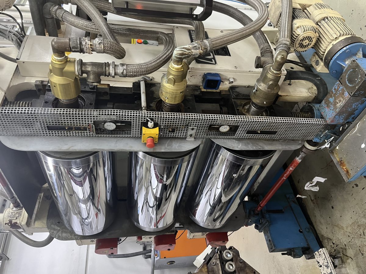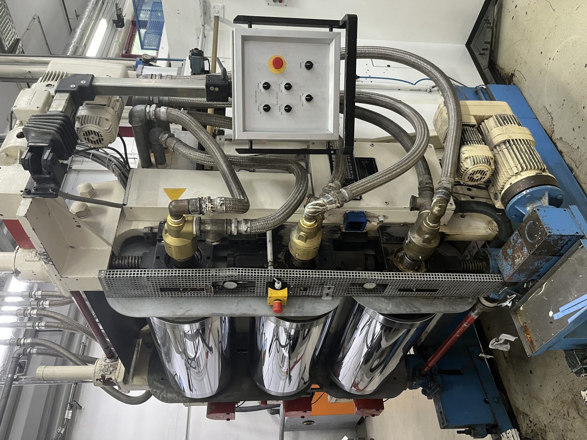 Verkaufen eine gebrauchte Tiefziehfolienanlage von Kuhne. Anlage ist bis zum Schluss gelaufen. Hauptextruder und 2 Co-Extruder. 2 Schmelzepumpen, Siebwechsler, Feedblock, Düse 900mm Glättwerk mit Abzug. Vakuumpumpe für Entgasung. Mischeinheit für auf den Extruder, aber ohne Abscheider. Seitenkanalverdichter mit Staubfilter. HKA´s für Glättwerk und einer Personalbühne für über die Extruder. Anlage und Schaltschrank müssen neu verkabelt werden, da die Kabel zwischen Schaltschrank und Anlage abgetrennt wurden. Kabel konnten nicht zurück gezogen werden. Anlage ist eingelagert und kann besichtigt werden