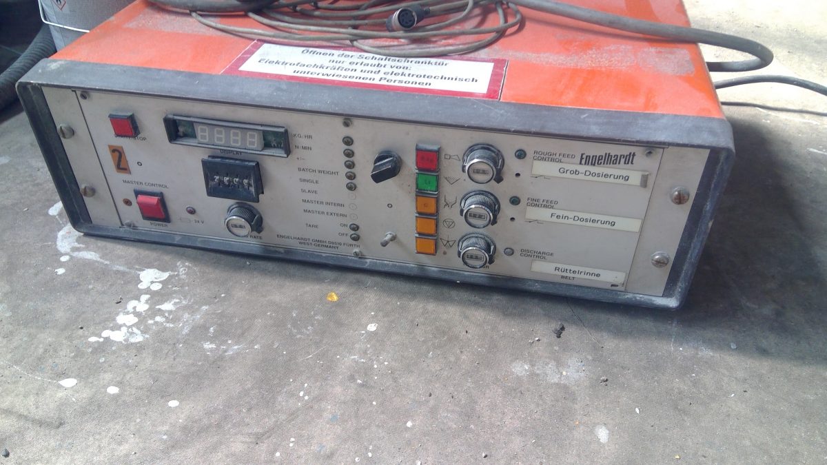 Pulverdosierrüttelrinne gebraucht. Funktionen sind da. Sollte geprüft werden Funktion richtig ist. Es gibt dazu noch 2 Ersatzsteuerungen. Hat Füllstandwarnleuchte im Vorratstrichter.Keine Dokumentation vorhanden