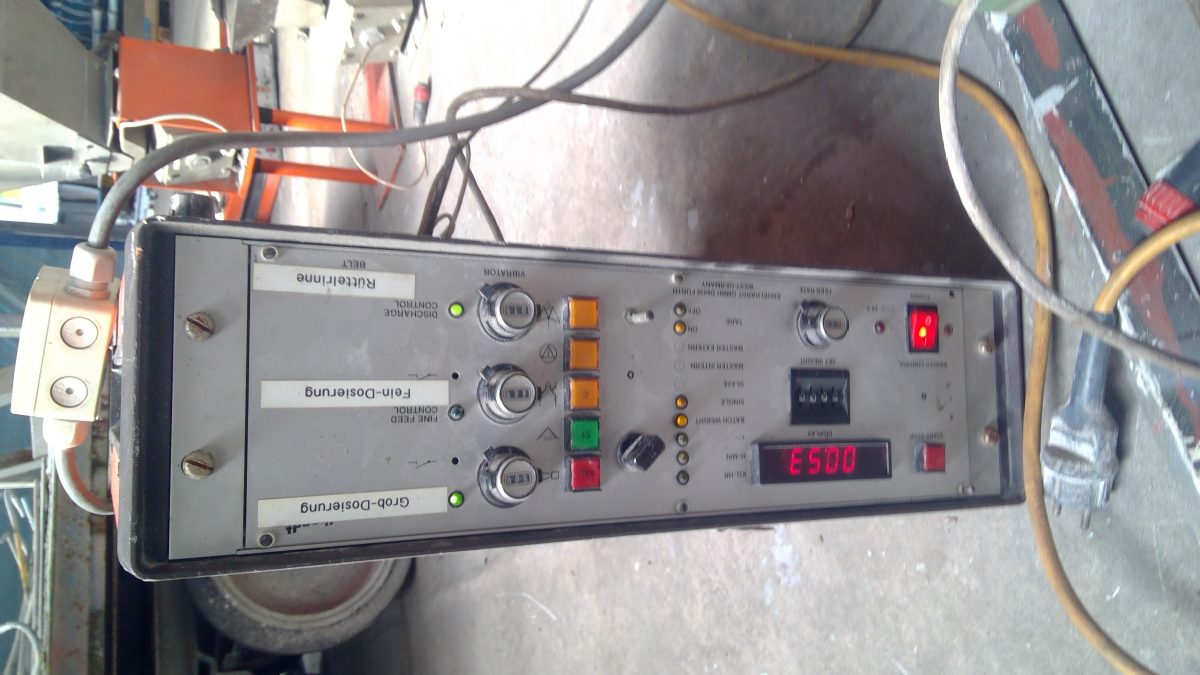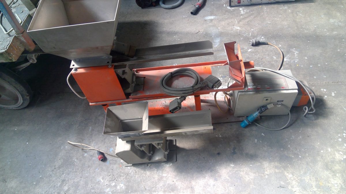 Gebrauchte Dosierrüttelrinne. Funktionen sind da. Sollte genau getestet werden. Vorratstrichter hat Füllstandsensor. Warnung über Blitzleuchte. Keine Dokumentation vorhanden. 2 Stk. Ersatzsteuerungen dabei als Teileträger