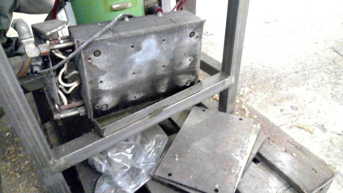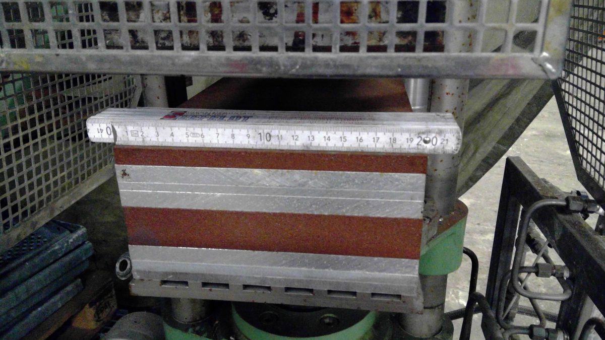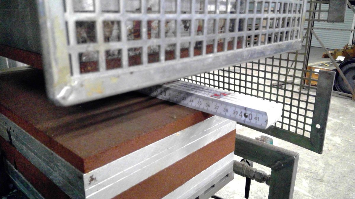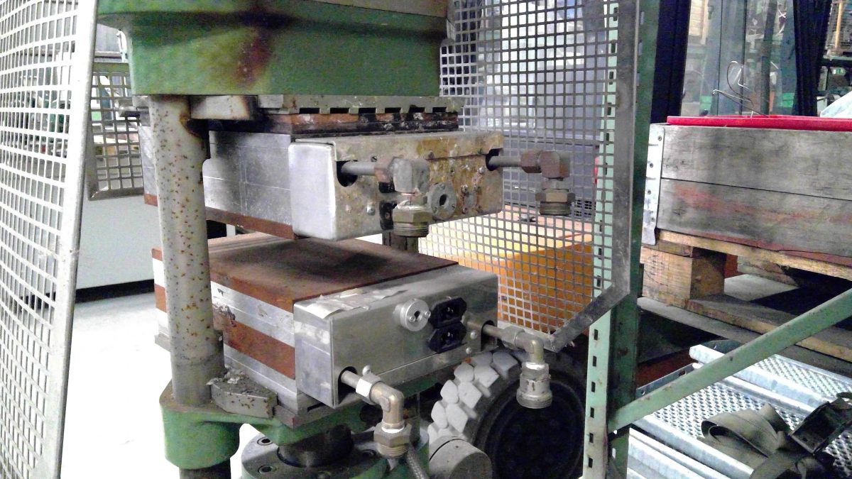 Plattenpresse elektrisch beheizbar. Kühlung über Wasser. Anlage muss überprüft werden.